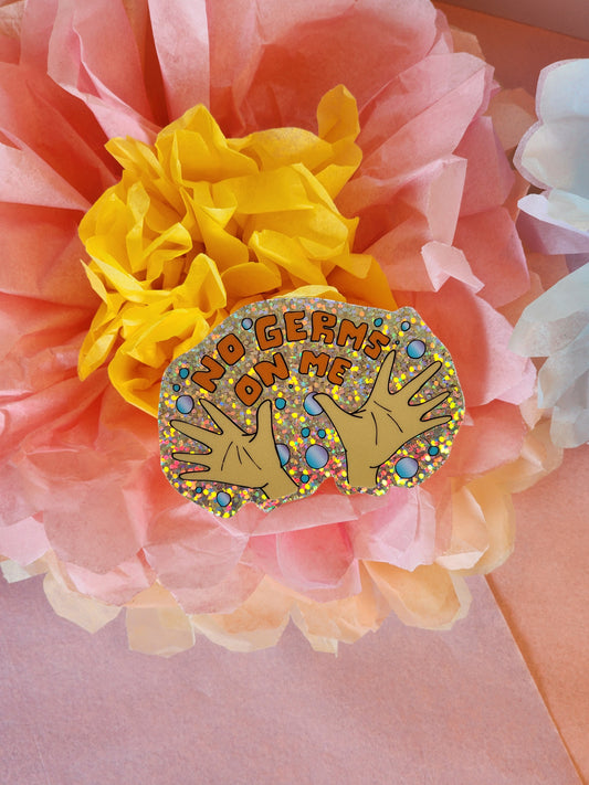 "No Germs on Me" Glitter Sticker | Hand-washing Reminder